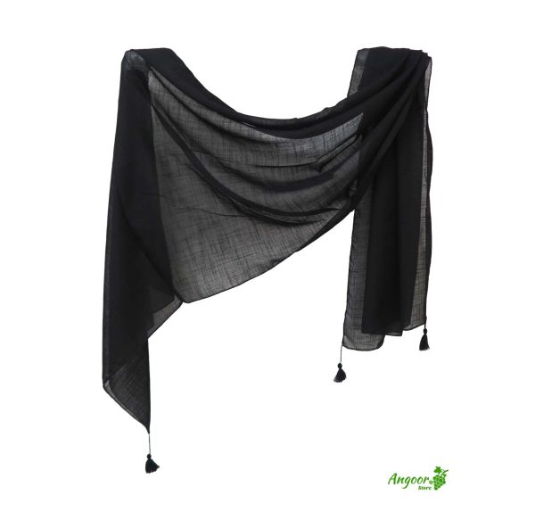 شال نخی تک رنگ ساده لنین رنگ مشکی کد 2126