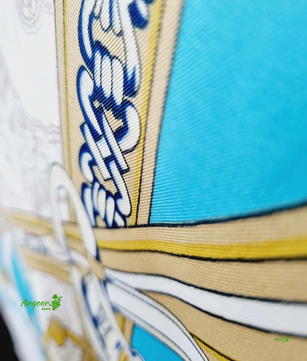 روسری ابریشم توییل مجلسی حاشیه فیروزه ای کد 1204